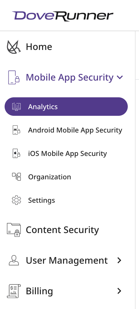 Mobile App Security Console: Can be accessed on DoveRunner Console directly.